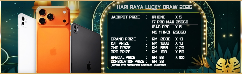 • Consolation Prize Member that had made deposit over RM 500 From 19th February 2026 to 21th March 2026 Will automatically get the Prize.